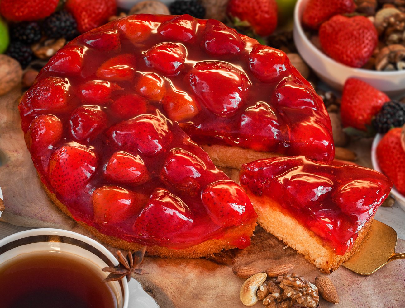 Пирог Голландский клубничный Нежный бисквит с клубникой, залитый сладким гелем- 600гр