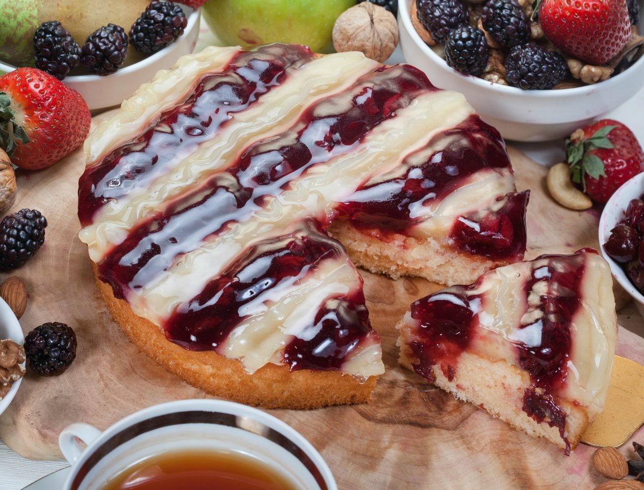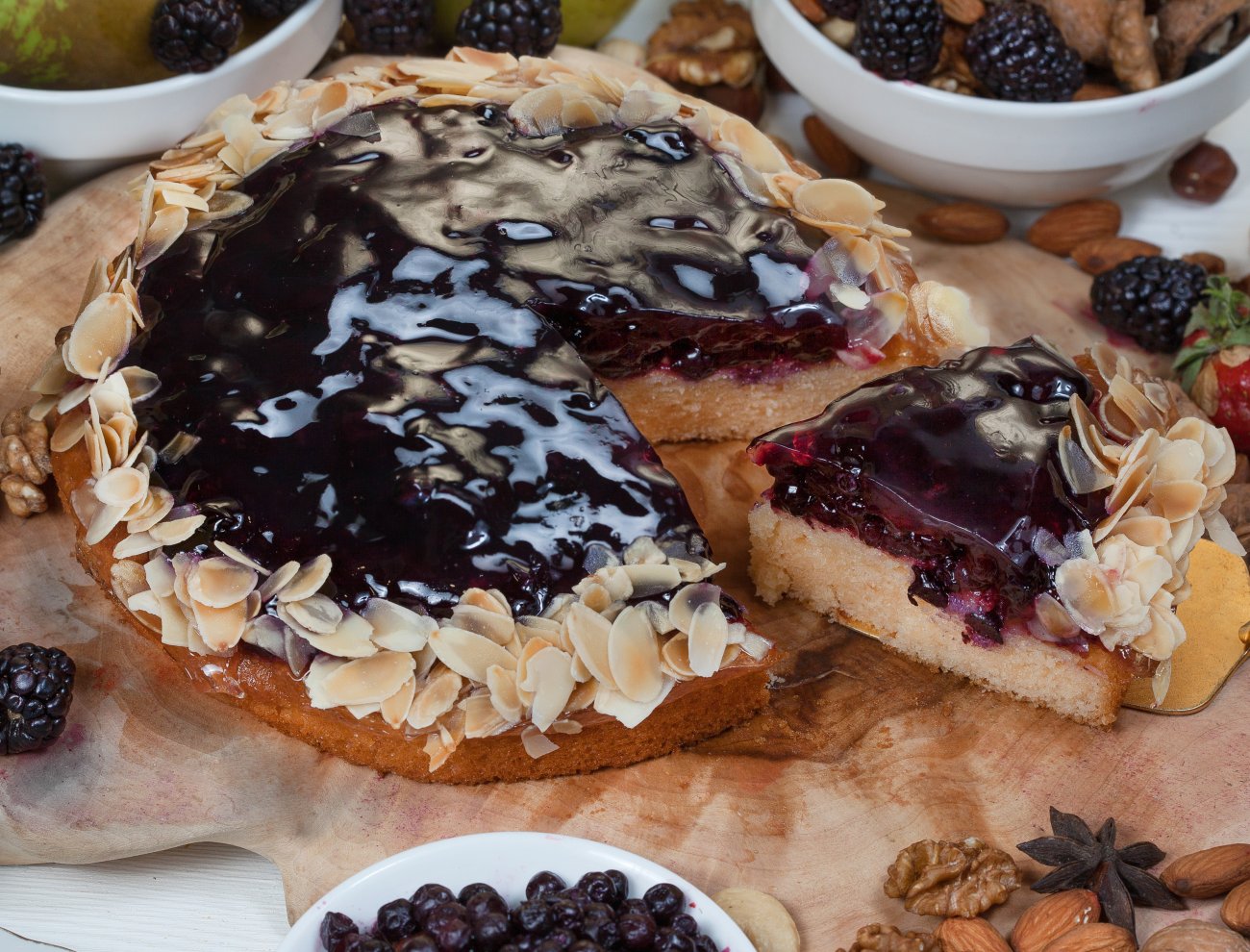 Пирог Голландский черничный 550гр Нежный бисквит с черникой, залитый сладким гелем -