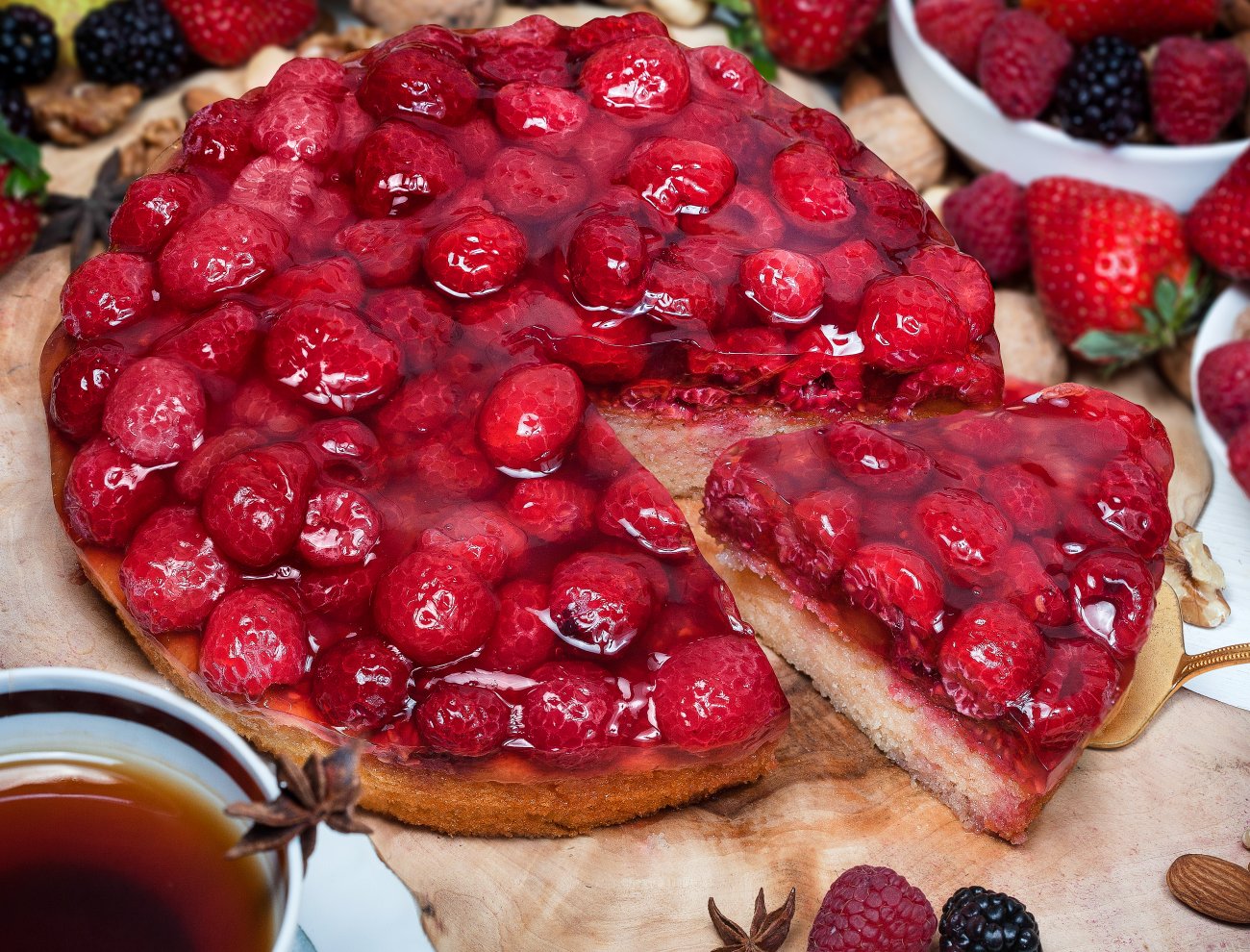 Пирог Голландский малиновый 600гр Нежный бисквит с малиной, залитый сладким гелем -